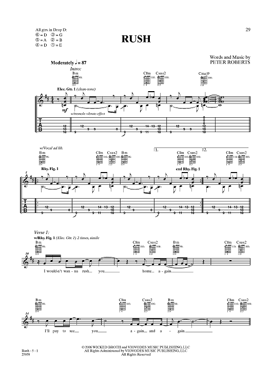 Digital Sheet Music for Rush by Peter Roberts, People In Planes scored for Guitar Tab/Vocal; id:356831