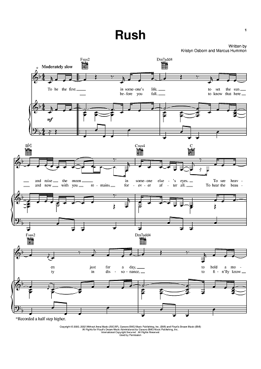 Digital Sheet Music for Rush by Marcus Hummon, SHeDAISY, Kristyn Osborn scored for Piano/Vocal/Chords; id:370060