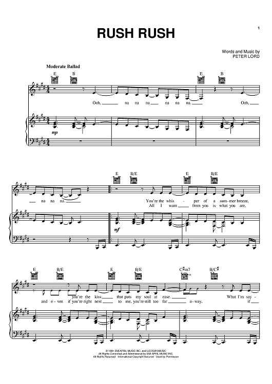 Digital Sheet Music for Rush Rush by Paula Abdul, Peter Lord scored for Piano/Vocal/Chords; id:402576