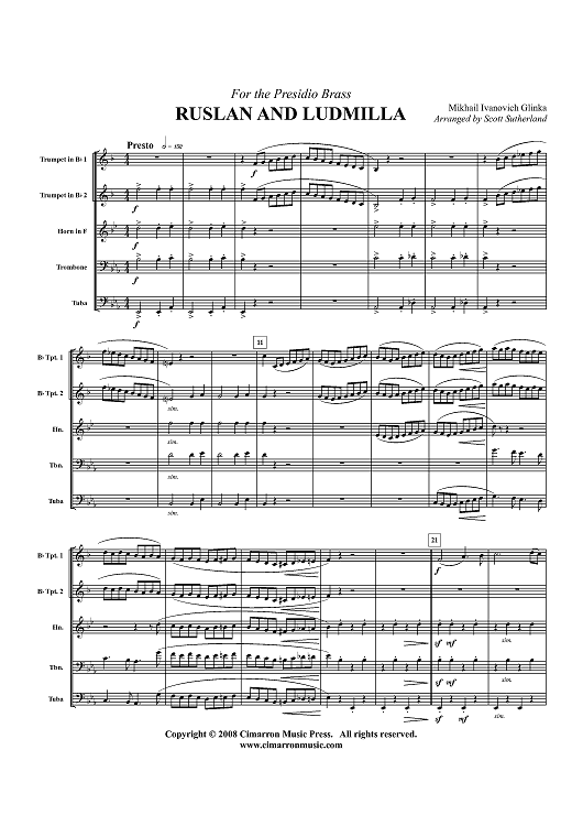 Digital Sheet Music for Ruslan and Ludmilla - Score by Mikhail Glinka, Scott Sutherland scored for Brass Quintet; id:415996