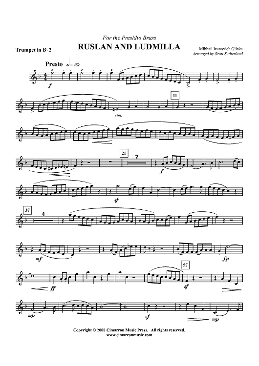 Digital Sheet Music for Ruslan and Ludmilla - Trumpet 2 in Bb by Mikhail Glinka, Scott Sutherland scored for Brass Quintet; id:415998