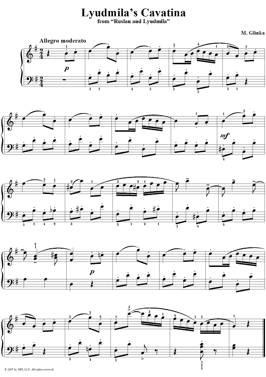 Digital Sheet Music for Ruslan and Lyudmila. 2. Lyudmila’s Cavatina by Mikhail Glinka, Olga Katargina scored for Piano Solo; id:366282