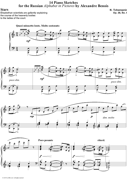 Digital Sheet Music for Russian Alphabet. 6. Stars by , Nicholas Tcherepnin scored for Piano Solo; id:364109