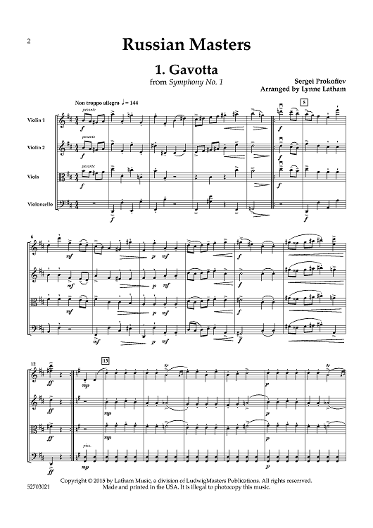 Digital Sheet Music for Russian Masters - Score by Various, Lynne Latham scored for String Quartet; id:462575