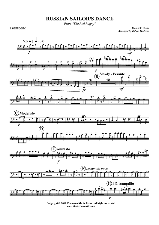 "Russian Sailor's Dance - Trombone" Sheet Music by Reinhold Glière