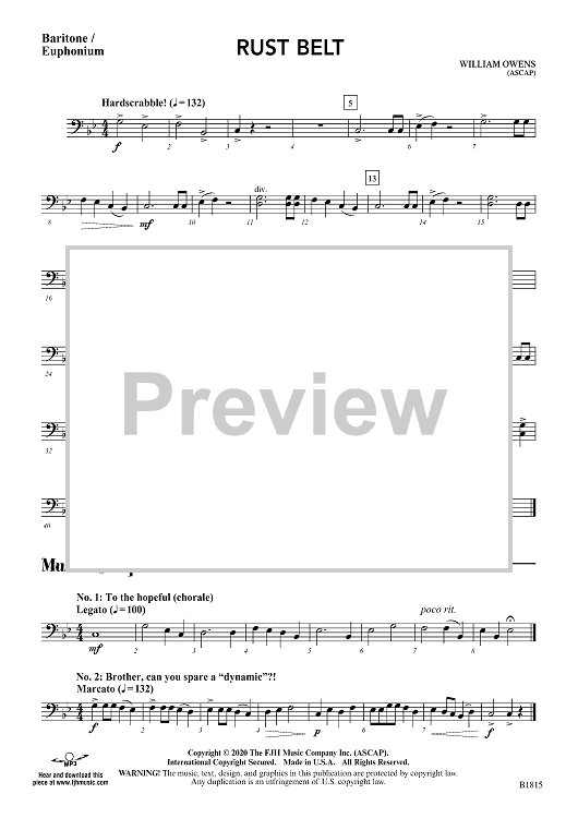 "Rust Belt - Baritone / Euphonium" Sheet Music by William Owens