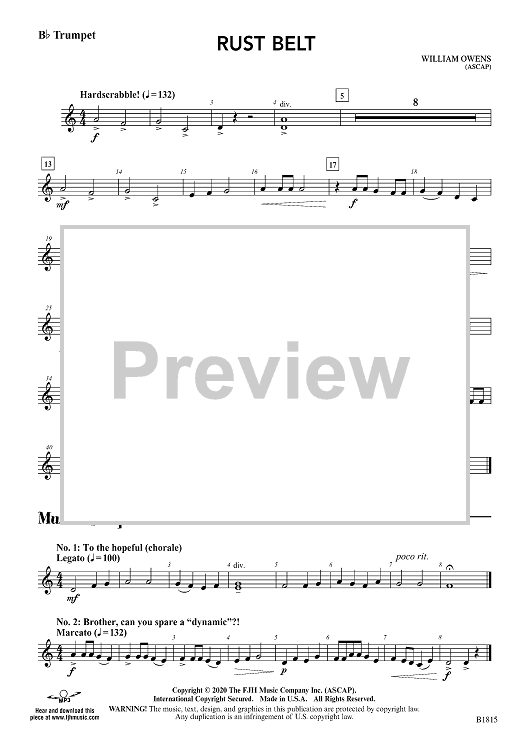 "Rust Belt - Bb Trumpet" Sheet Music by William Owens