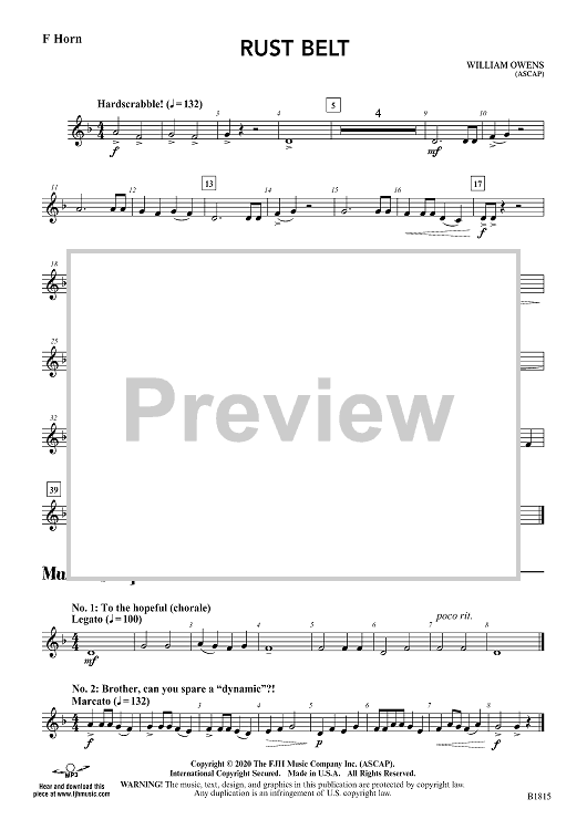 Digital Sheet Music for Rust Belt - F Horn by William Owens scored for Concert Band; id:500897