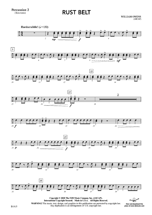 Digital Sheet Music for Rust Belt - Percussion 2 by William Owens scored for Concert Band; id:500906