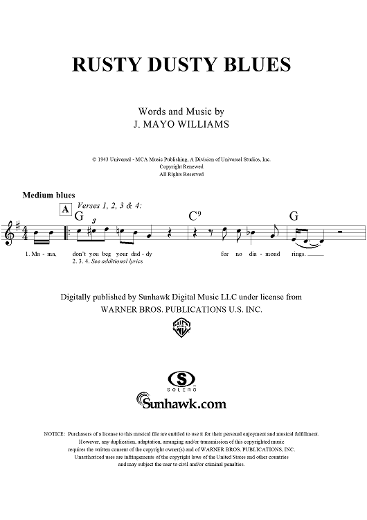 Digital Sheet Music for Rusty Dusty Blues by J. Mayo Williams scored for Lead Sheet; id:291629