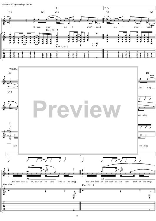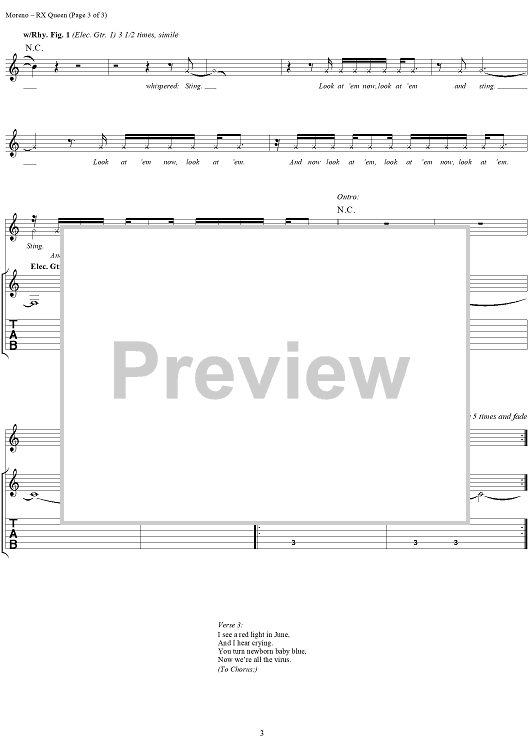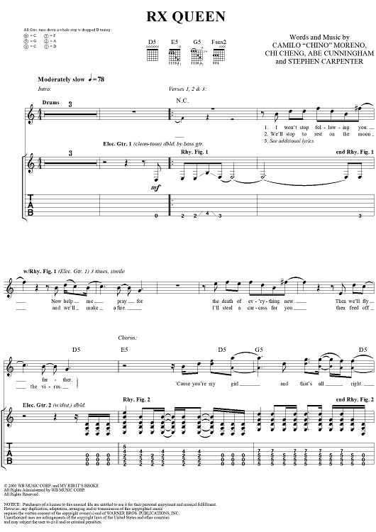 Digital Sheet Music for RX Queen by Deftones, Chino Moreno, Chi Cheng, Abe Cunningham scored for Guitar Tab/Vocal; id:286531