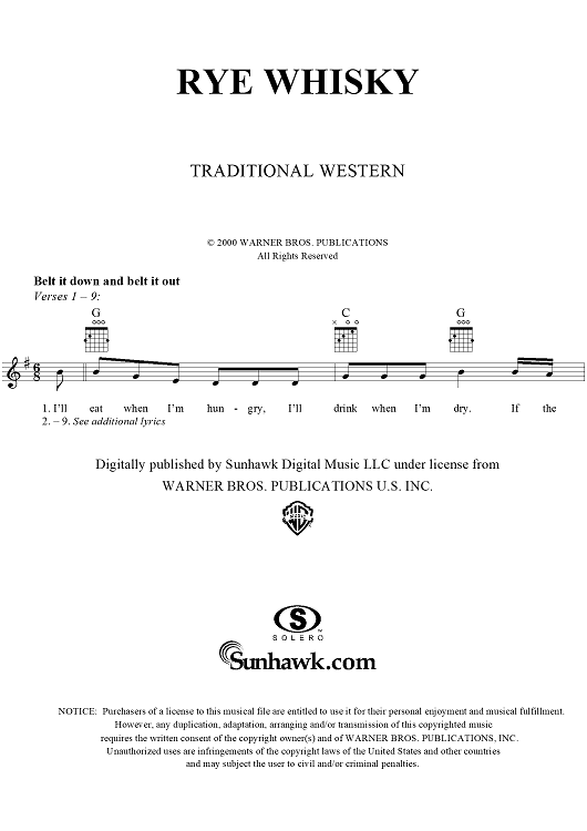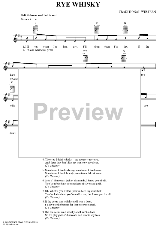 Digital Sheet Music for Rye Whisky by Dr. Higley Brewster, Traditional scored for Lead Sheet; id:292670
