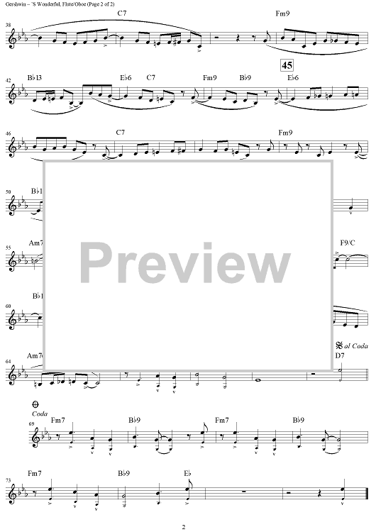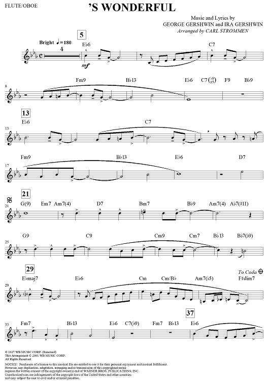 Digital Sheet Music for 'S Wonderful by George Gershwin, Ira Gershwin, Carl Strommen scored for Flute or Oboe; id:308558