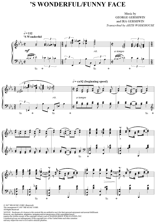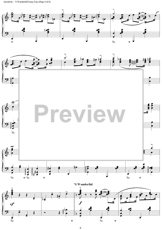 Digital Sheet Music for 'S Wonderful by George Gershwin, Ira Gershwin scored for Piano Solo; id:310998