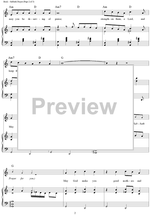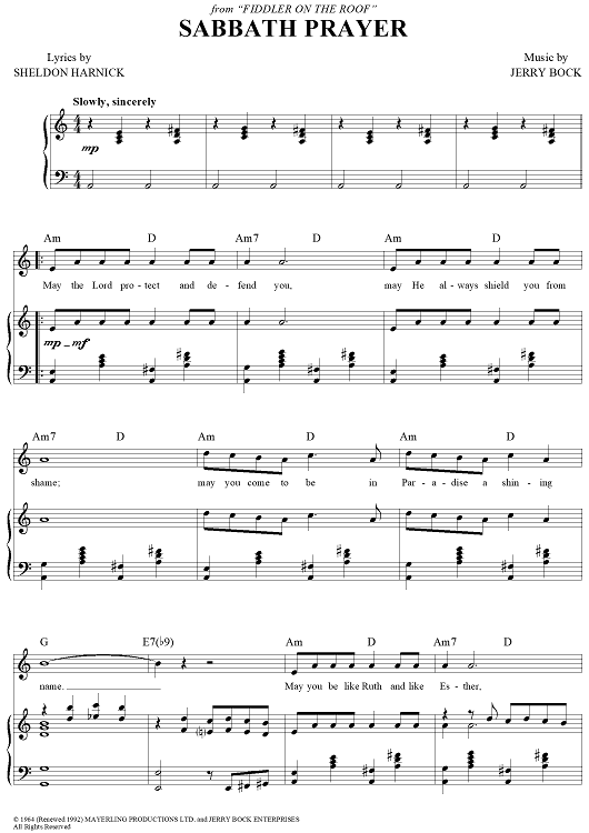 Digital Sheet Music for Sabbath Prayer by Jerry Bock, Sheldon Harnick scored for Piano/Vocal/Chords; id:307906