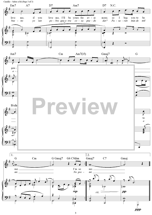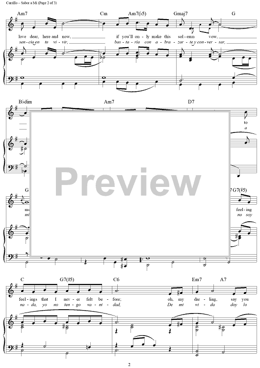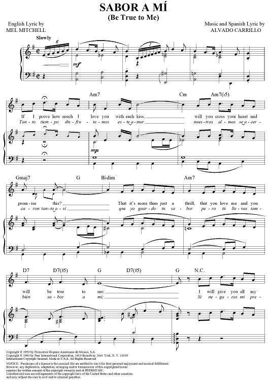 Digital Sheet Music for Sabor a Mi (Be True to Me) by Alvaro Carrillo, Mel Mitchell scored for Piano/Vocal/Chords; id:355096