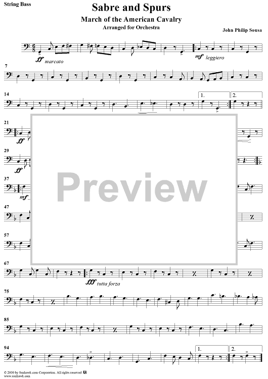 Digital Sheet Music for Sabre and Spurs - Bass by John Philip Sousa scored for Orchestra; id:264656