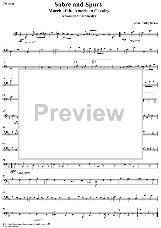 Digital Sheet Music for Sabre and Spurs - Bassoon by John Philip Sousa scored for Orchestra; id:161360