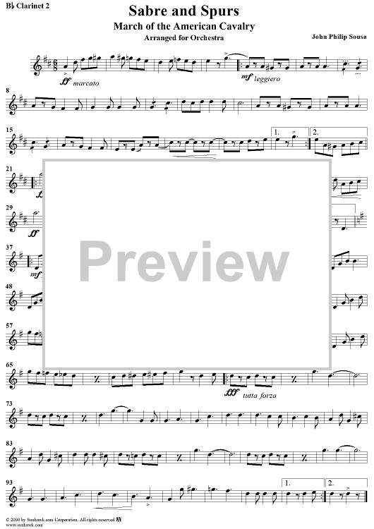Digital Sheet Music for Sabre and Spurs - Clarinet 2 by John Philip Sousa scored for Orchestra; id:257996