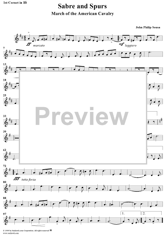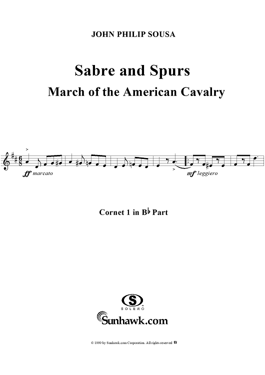 "Sabre and Spurs - Cornet 1" Sheet Music by John Philip Sousa