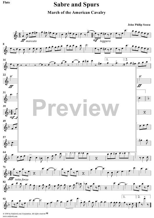 "Sabre and Spurs - Flute" Sheet Music by John Philip Sousa