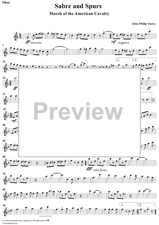 "Sabre and Spurs - Oboe" Sheet Music by John Philip Sousa