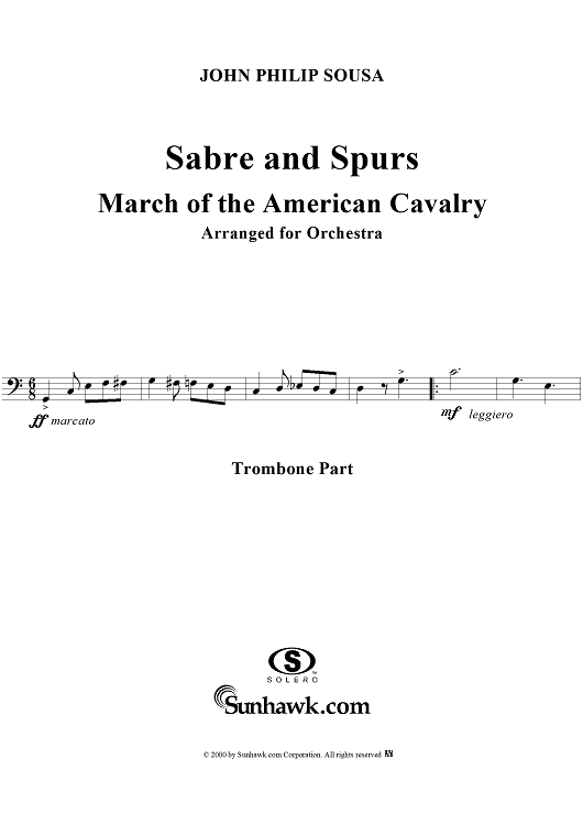 Digital Sheet Music for Sabre and Spurs - Trombone by John Philip Sousa scored for Orchestra; id:161355
