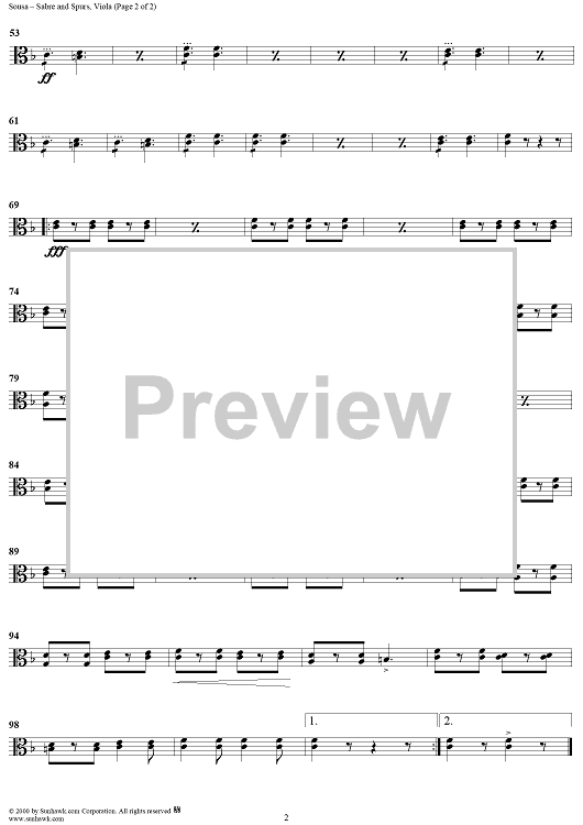 "Sabre and Spurs - Viola" Sheet Music by John Philip Sousa