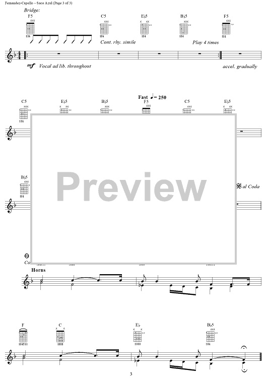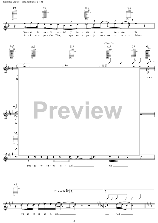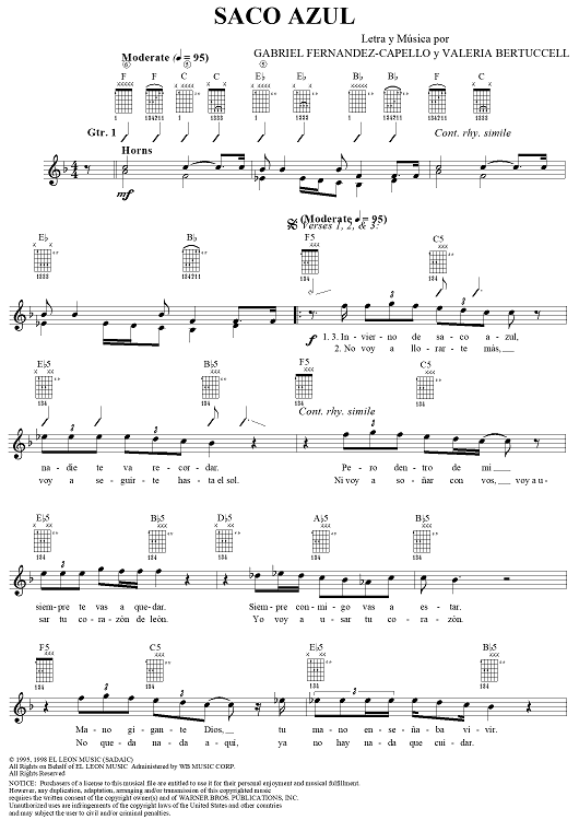 Digital Sheet Music for Saco Azul by Gabriel Fernandez-Capello, Los Fabulosos Cadillacs, Valeria Bertuccelli scored for Lead Sheet; id:269919