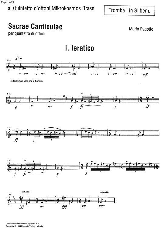 "Sacrae Canticulae - Trumpet 1" Sheet Music by Mario Pagotto