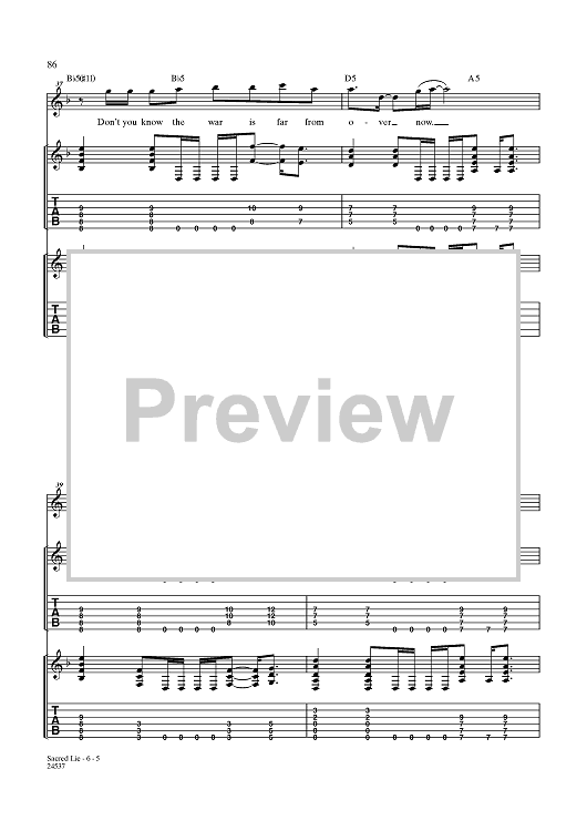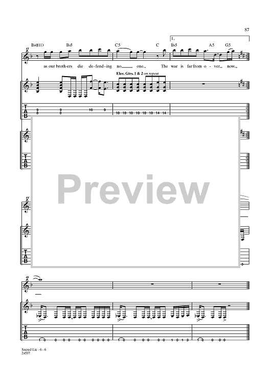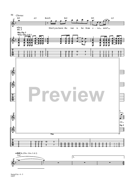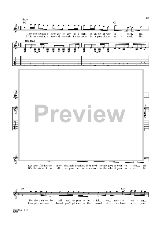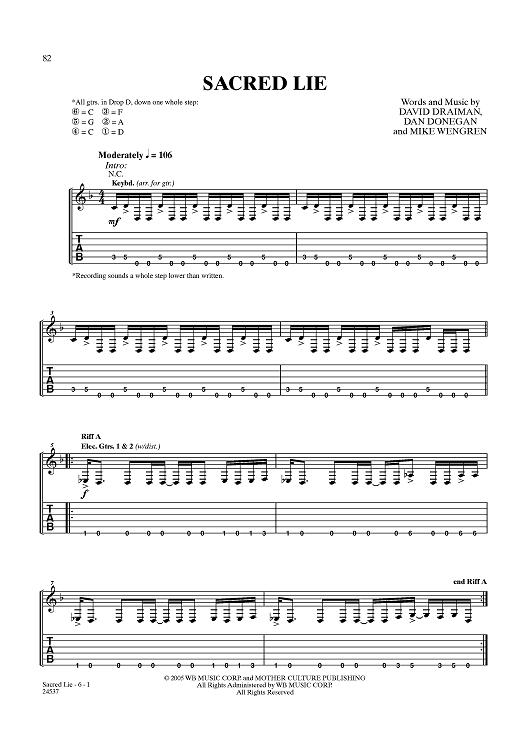 Digital Sheet Music for Sacred Lie by Disturbed, Mike Wengren, Dan Donegan, David Draiman scored for Guitar Tab/Vocal; id:357799