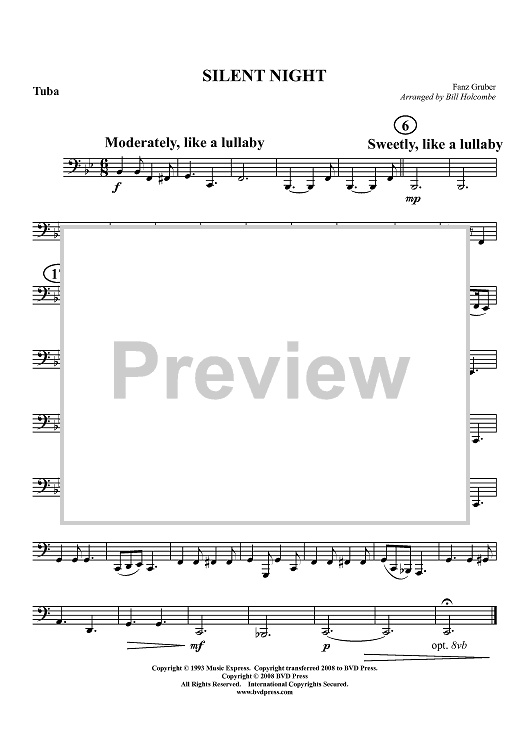Digital Sheet Music for Sacred Sounds Of Christmas - Tuba by , Various, Bill Holcombe scored for Brass Quintet; id:417662