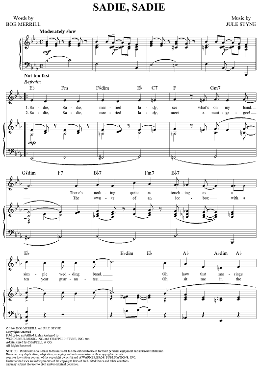 Digital Sheet Music for Sadie, Sadie by Jule Styne, Bob Merrill scored for Piano/Vocal/Chords; id:297812