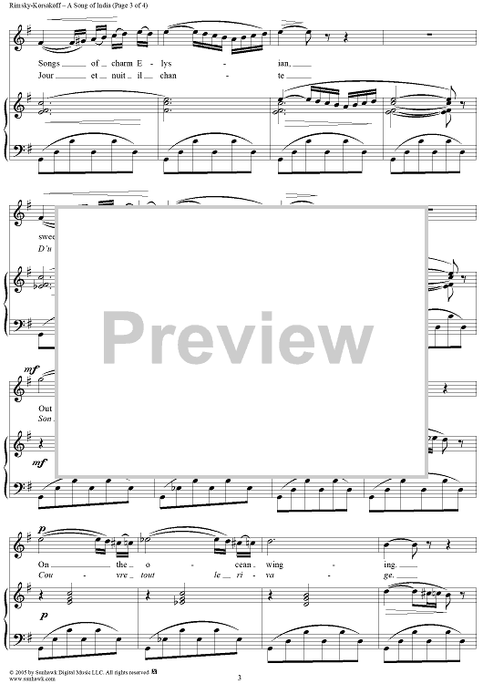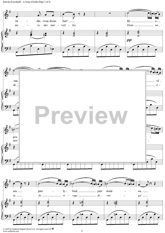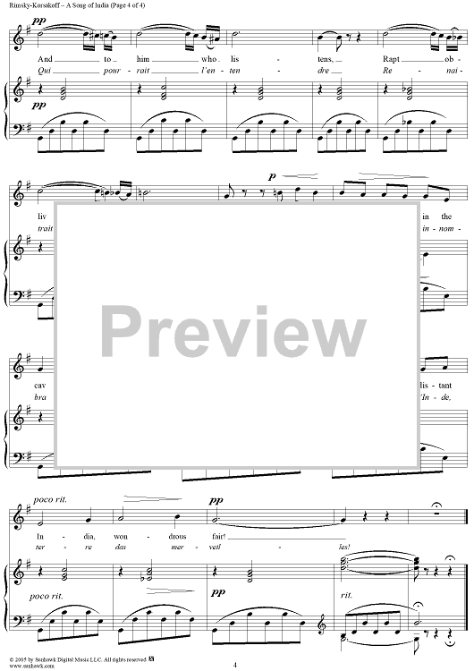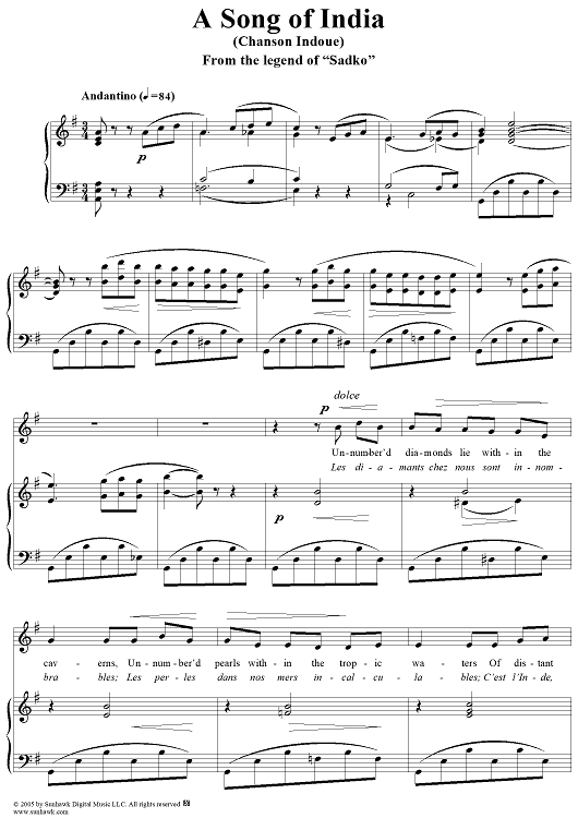Digital Sheet Music for Sadko: A Song of India by Vladimir Belsky, Nikolai Rimsky-Korsakov scored for Voice/Piano; id:94585