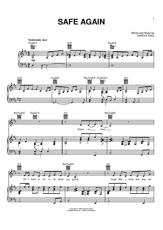 "Safe Again" Sheet Music by Carole King