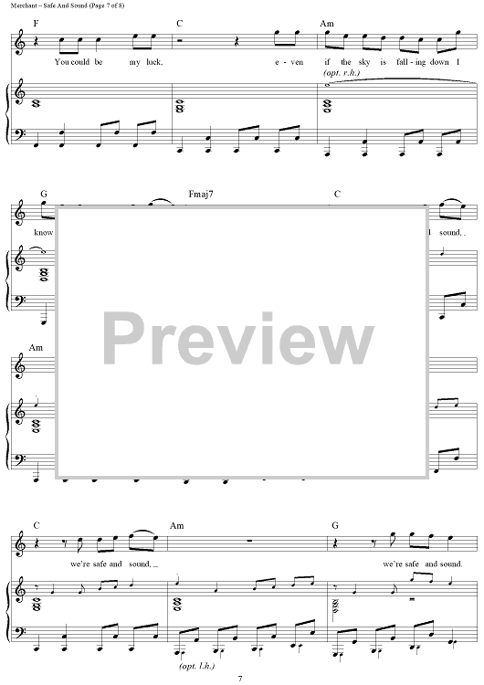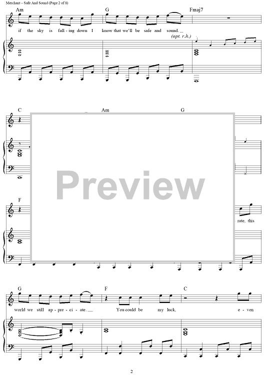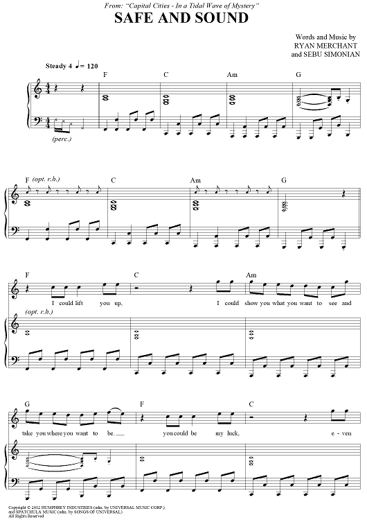 Digital Sheet Music for Safe And Sound by Capital Cities, Ryan Merchant, Sibu Simonian scored for Piano/Vocal/Chords; id:437403