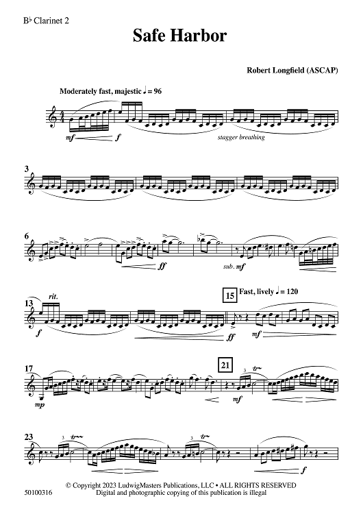 Digital Sheet Music for Safe Harbor - Bb Clarinet 2 by Robert Longfield scored for Concert Band; id:509694