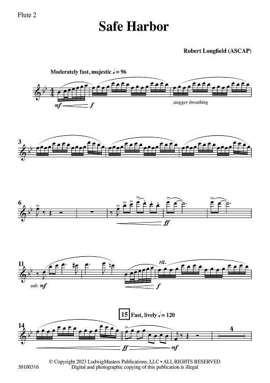 Digital Sheet Music for Safe Harbor - Flute 2 by Robert Longfield scored for Concert Band; id:509689