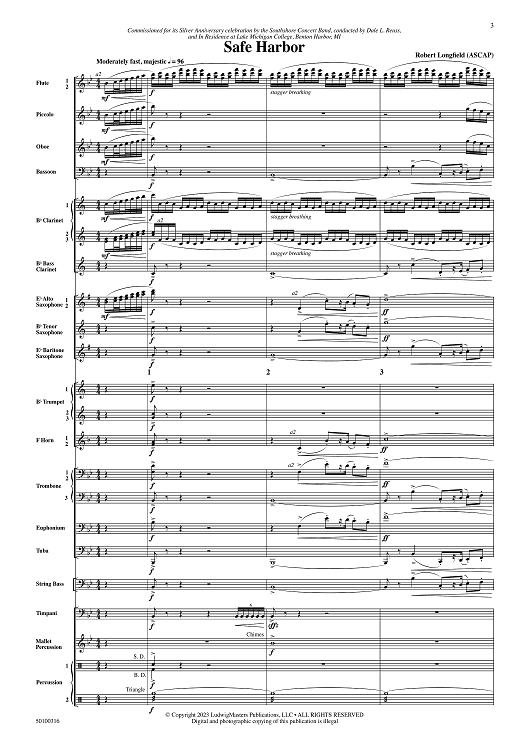 Digital Sheet Music for Safe Harbor - Full Score by Robert Longfield scored for Concert Band; id:509687