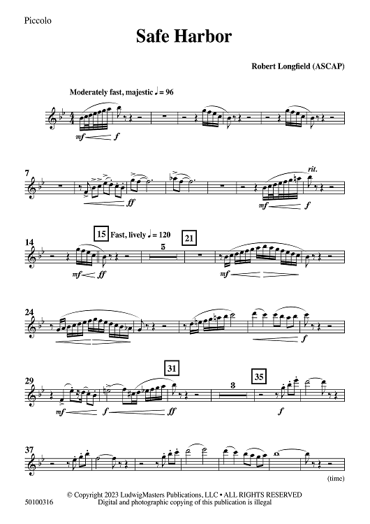 Digital Sheet Music for Safe Harbor - Piccolo by Robert Longfield scored for Concert Band; id:509690