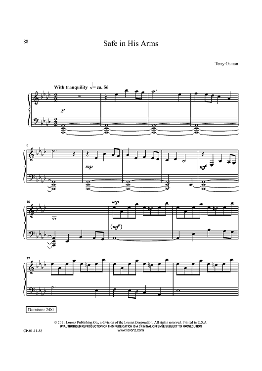 Digital Sheet Music for Safe in His Arms by Terry Osman scored for Piano Solo; id:434420