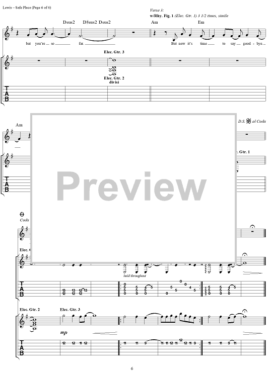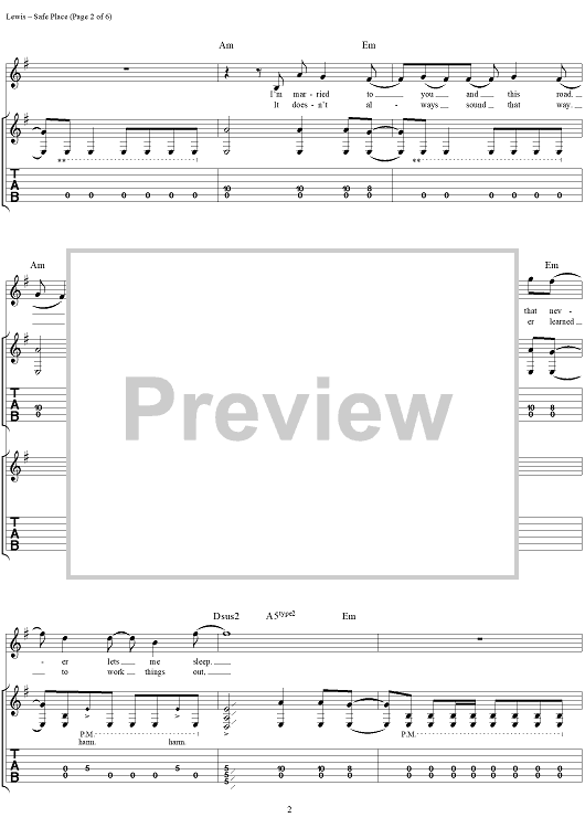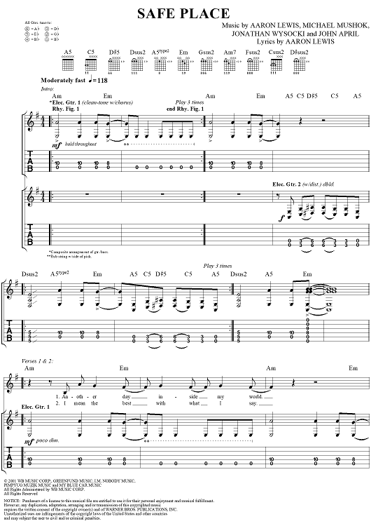 Digital Sheet Music for Safe Place by Aaron Lewis, Michael Mushok, Jonathan Wysocki, John April, Staind scored for Guitar Tab/Vocal; id:284932