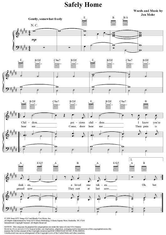 Digital Sheet Music for Safely Home by Jon Mohr, Steve Green scored for Piano/Vocal/Chords; id:252873