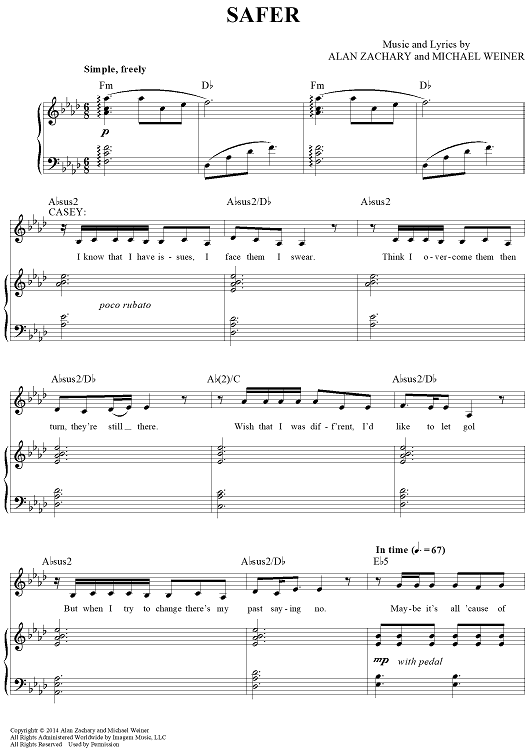 Digital Sheet Music for Safer by Michael Weiner, Alan Zachary scored for Piano/Vocal/Chords; id:458243