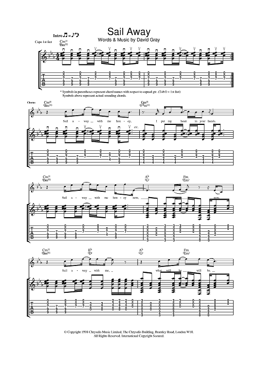 Digital Sheet Music for Sail Away by David Gray, The Levellers scored for Piano/Vocal/Chords; id:376537