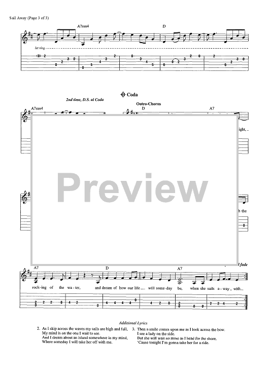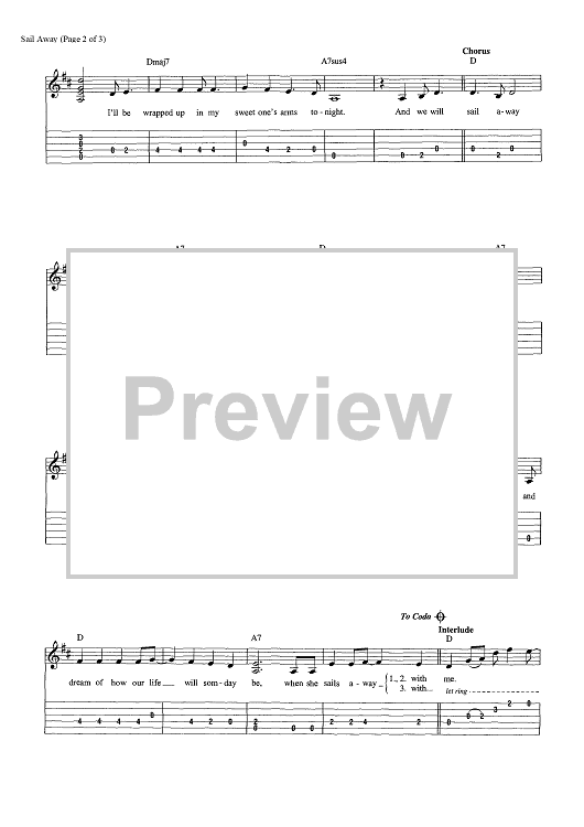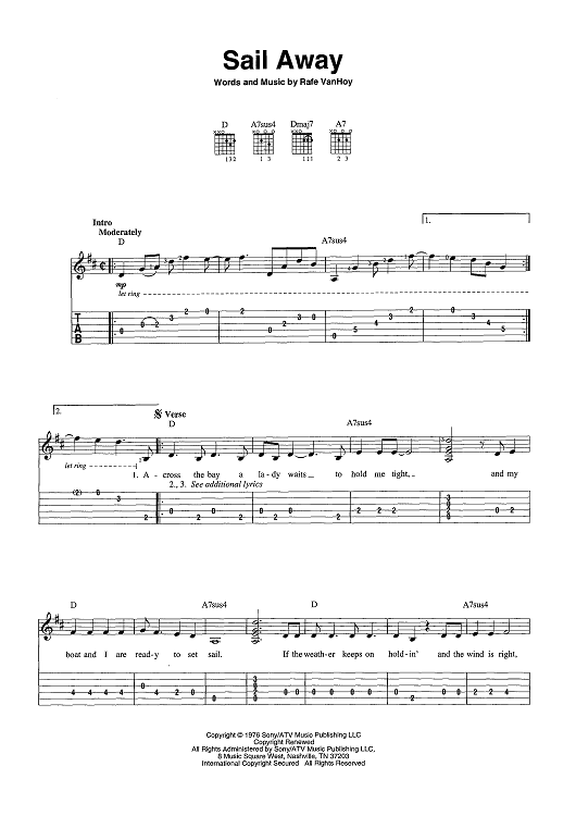 Digital Sheet Music for Sail Away by The Oak Ridge Boys, Rafe VanHoy scored for Easy Guitar Tab/Vocal/Chords; id:456828