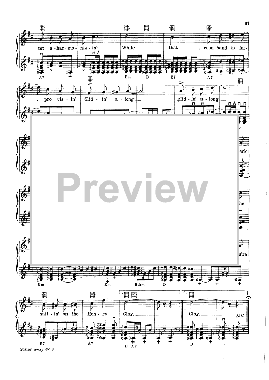 "Sailin' Away On The Henry Clay" Sheet Music by Egbert Van Alstyne