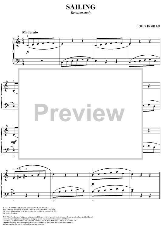 Digital Sheet Music for Sailing by Louis Köhler scored for Easy Piano; id:295740