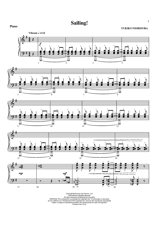 "Sailing! - Piano" Sheet Music by Yukiko Nishimura
