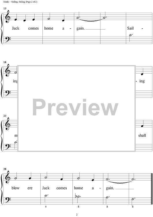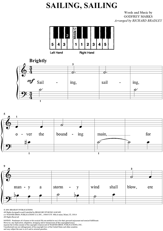 Digital Sheet Music for Sailing, Sailing by Richard Bradley, Godfrey Marks scored for Five Finger Piano; id:283374